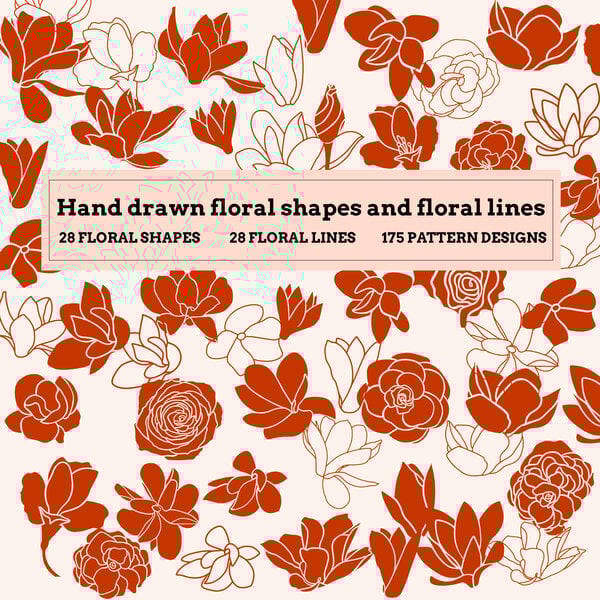 Hand drawn flowers, floral shapes and floral lines
